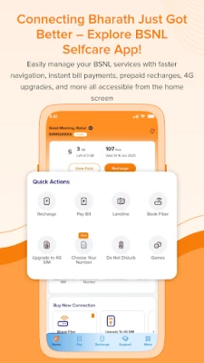 உங்கள் BSNL மொபைல் மற்றும் லேண்ட்லைன்/FTTH சேவைகளை முழுமையாகக் கட்டுப்படுத்தும் சக்தி இனி உங்கள் விரல் நுனியில். முற்றிலும் புதிய, மேம்படுத்தப்பட்ட பயனர் இடைமுகம், உங்களுக்கு அத்தியாவசியமான பல அம்சங்களுடன் வடிவமைக்கப்பட்டுள்ளது. இதன் மூலம் உங்கள் BSNL சேவைகளை முன்னெப்போதையும் விட எளிதாகவும், விரைவாகவும் நிர்வகிக்கலாம். எந்தவொரு சிக்கலும் இன்றி அனைத்து தகவல்களையும் ஒரே இடத்தில் அணுகி, உங்கள் நேரத்தை மிச்சப்படுத்துங்கள்.
