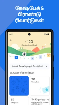 Google Payயின் மேம்பட்ட அம்சங்களுடன் உங்கள் நிதி மேலாண்மையை அடுத்த நிலைக்கு உயர்த்துங்கள். உங்கள் டெபிட் மற்றும் கிரெடிட் கார்டுகளை Google Pay உடன் இணைத்து ஆன்லைன் மற்றும் NFC ஆதரவுள்ள டெர்மினல்களில் தொடுதலின்றி பணம் செலுத்துங்கள். MMTC-PAMP நிர்ணயித்த விலையில் 24 கேரட் தங்கத்தை வாங்கவும், விற்கவும், ஏன் வெகுமதிகளாகப் பெறவும் முடியும். உங்கள் தங்கம் பாதுகாப்பான Google Pay லாக்கரில் வைக்கப்படும் அல்லது தங்க நாணயமாக உங்கள் வீட்டிற்கே அனுப்பப்படும். புதிய வெகுமதி திட்டங்களின் மூலம் நண்பர்களைப் பரிந்துரைப்பதன் மூலமும், சலுகைகளைப் பெறுவதன் மூலமும், பணம் செலுத்துவதன் மூலமும் உங்கள் வங்கிக் கணக்கிலேயே கேஷ் ரிவார்டுகளைப் பெறுங்கள். DMI Finance வழங்கும் கடன்களையும் Google Pay வழியாகப் பெறலாம், இதில் 3 முதல் 48 மாதங்கள் வரை திருப்பிச் செலுத்தும் கால அவகாசம் மற்றும் வெளிப்படையான செயலாக்கக் கட்டணங்கள் மற்றும் வட்டி விகிதங்கள் உள்ளன. Google Pay, உங்கள் நிதிப் பரிமாற்றங்கள் அனைத்திற்கும் மேம்பட்ட பாதுகாப்பு மற்றும் நிகரற்ற வசதியை வழங்க உறுதிபூண்டுள்ளது.