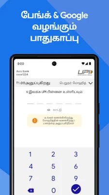 Google Pay மூலம் உங்கள் நிதிப் பரிமாற்றங்களை மிக எளிமையாகவும் பாதுகாப்பாகவும் மேற்கொள்ளுங்கள். உங்கள் வங்கியில் பதிவு செய்யப்பட்ட மொபைல் எண்ணைப் பயன்படுத்தி, வங்கிக் கணக்குகளை Google Pay உடன் இணைத்து, டிஜிட்டல் பரிவர்த்தனைகளின் உலகிற்குள் நுழையுங்கள். வங்கிக் கணக்கு விவரங்களுக்குப் பதிலாக, உங்களுக்கென பிரத்யேக UPI ஐடியை உருவாக்கி, பணப் பரிமாற்றங்களை விரைந்து முடிக்கலாம். Google Pay இல் இல்லாதவர்களுக்கும் கூட, எந்தவொரு வங்கிக் கணக்கிற்கும் UPI வழியாக நேரடியாகப் பணம் அனுப்பும் வசதி உள்ளது. ஒவ்வொரு பரிவர்த்தனையும் UPI PIN மூலம் பாதுகாக்கப்பட்டு, Google மற்றும் வங்கிகளின் பல அடுக்கு பாதுகாப்புடன் உங்கள் பணம் உங்கள் வங்கிக் கணக்கிலேயே எப்போதும் பத்திரமாக இருக்கும்.