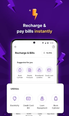 மொபைல், DTH ரீசார்ஜ்கள் முதல் மின்சாரம், தண்ணீர், எரிவாயு, கிரெடிட் கார்டு மற்றும் பிராட்பேண்ட் பில்கள் வரை அனைத்து கட்டணங்களையும் PhonePe மூலம் செலுத்துங்கள். Jio, Vodafone, Airtel, Tata Sky போன்ற சேவை வழங்குநர்களுக்கு ரீசார்ஜ் செய்யலாம். உங்களுக்குப் பிடித்தமான ஆன்லைன் வணிகர்களிடமிருந்து வரும் பணத்தைத் திரும்பப் பெறுவதையும் (refunds) PhonePe-யில் எளிதாகக் கண்காணிக்கலாம். ஒரு லட்சத்திற்கும் மேற்பட்ட கடைகள் மற்றும் ஆன்லைன் தளங்களில் பயன்படுத்தக்கூடிய PhonePe கிஃப்ட் கார்டுகளையும் வாங்கலாம். உங்கள் அனைத்து நிதிச் சேவைகளையும் ஒரு வசதியான, பாதுகாப்பான மற்றும் நம்பகமான தளத்தில் அனுபவிக்க PhonePe உள்ளது.