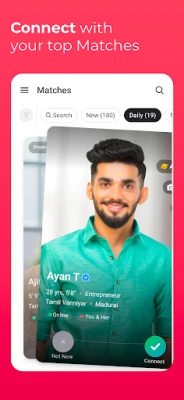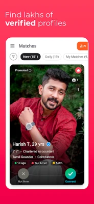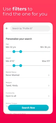 தமிழ்ஷாதி திருமண ஆப் இந்தியாவின் நம்பகமான மேட்ரிமோனி சேவை. ஷாதி லைவ் மூலம் ஒரு மணி நேரத்தில் 10 பொருத்தங்களைக் கண்டுபிடித்து வீடியோ அழைப்பில் சந்திக்கலாம். தமிழ் ஆண்களுக்கும் பெண்களுக்கும் வாழ்க்கை துணையை கண்டறிய உதவும். பிராமணர், நாடார், வன்னியர் போன்ற சமூகத்தினர் எளிதாக தங்கள் துணையை தேர்ந்தெடுக்கலாம்.